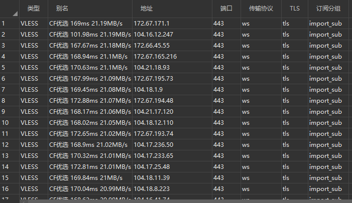 CF官方列表,推荐使用CM整理列表即可,该列表包含了大部分三网优选IP段,且会不定期更新维护; - 端口:默认为